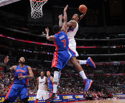 LOS ANGELES, CA - MARCH 10: DeAndre Jordan #6 of the Los Angeles Clippers dunks on an alley-oop pass from teammate Chris Paul #3 against Brandon Knight #7 of the Detroit Pistons at Staples Center on March 10, 2013 in Los Angeles, California. NOTE TO USER: User expressly acknowledges and agrees that, by downloading and/or using this Photograph, user is consenting to the terms and conditions of the Getty Images License Agreement. Mandatory Copyright Notice: Copyright 2013 NBAE (Photo by Noah Graham/NBAE via Getty Images)
